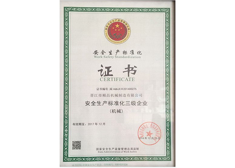 安全生產(chǎn)標(biāo)準(zhǔn)化三級(jí)企業(yè)