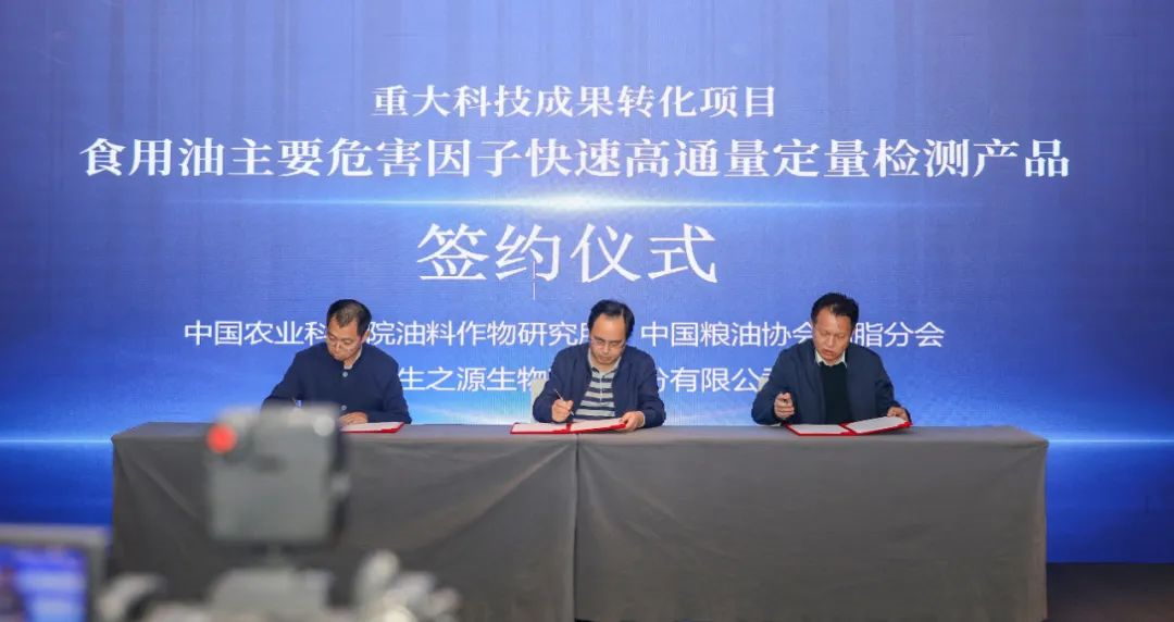會上,公司副總經(jīng)理尚賢軍與中國農(nóng)科院油料所、中國糧油學(xué)會油脂分會簽訂了三方合作協(xié)議;維士康公司銷售總監(jiān)王東與兩家經(jīng)銷商簽訂了新產(chǎn)品市場推廣協(xié)議??瀑惛窨偨?jīng)理羅紹祥、科賽博總經(jīng)理易汪雪、行政總監(jiān)朱蕓等參加了會議。