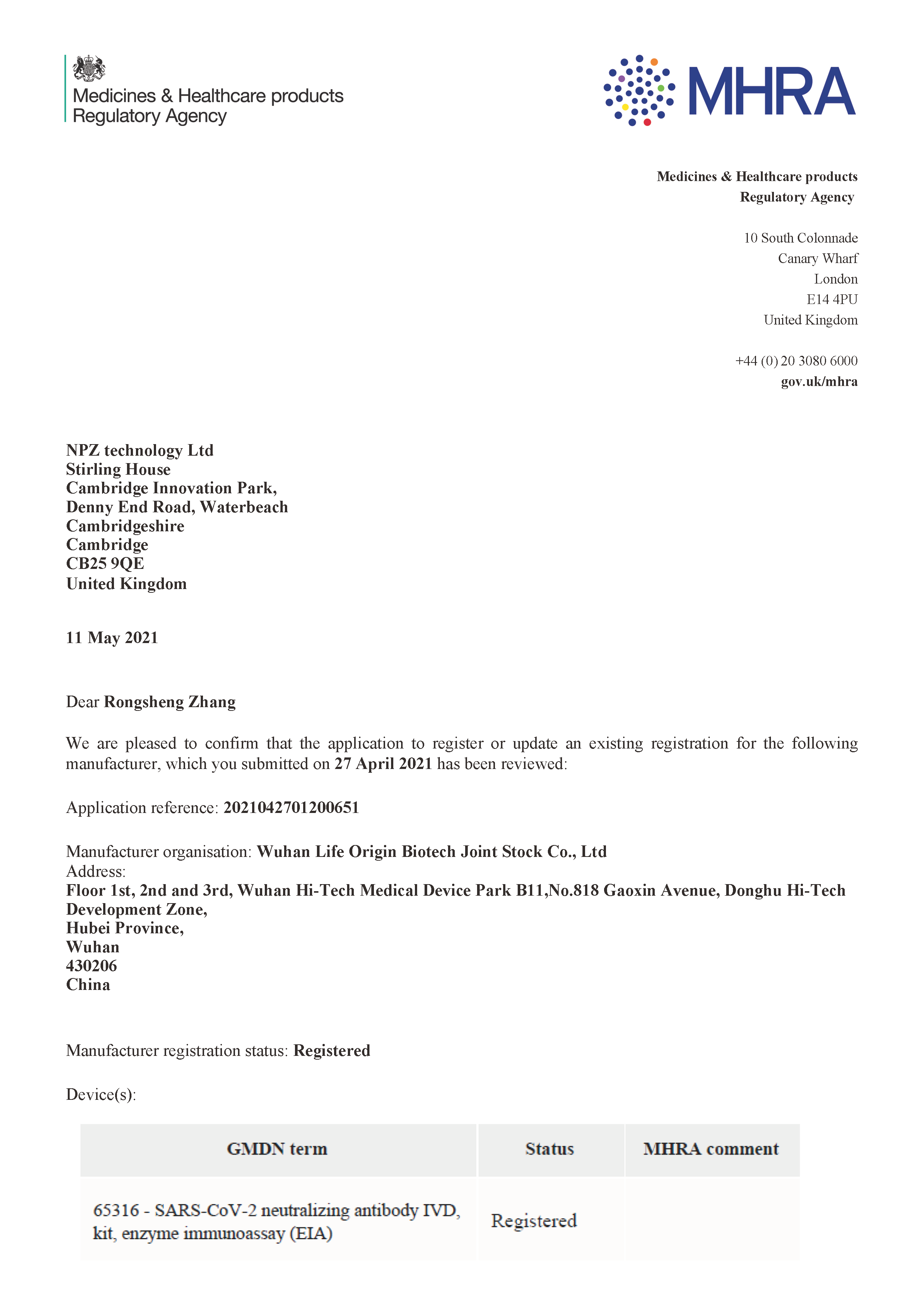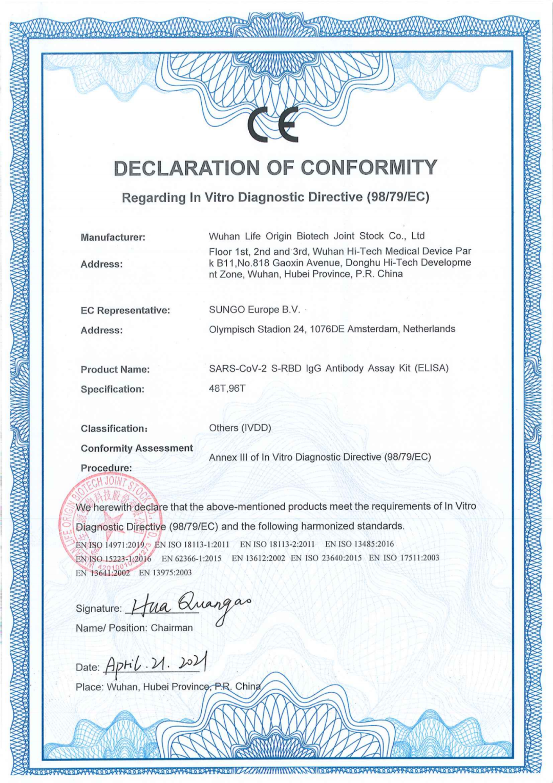 近日,生之源自主研發(fā)的新型冠狀病毒(SARS-CoV-2)棘突蛋白受體結(jié)合區(qū)IgG抗體測定試劑盒SARS-CoV-2 S-RBD IgG Antibody Assay Kit (ELISA)。獲得歐洲CE認(rèn)證與英國MHRA認(rèn)證。標(biāo)志著我司產(chǎn)品符合歐盟相關(guān)指令的要求,已完成歐盟主管當(dāng)局登記注冊,具備歐盟市場的準(zhǔn)入條件,得到了國際主流市場的認(rèn)可。