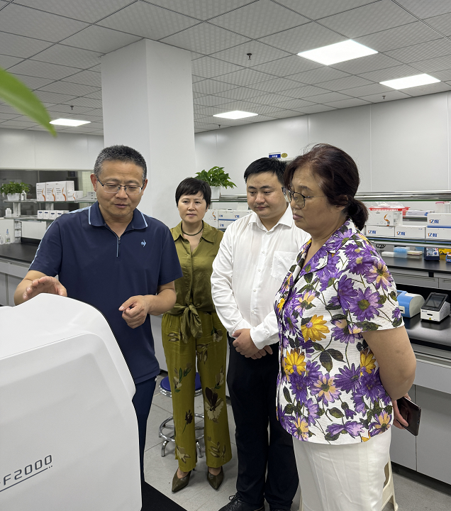 王主任饒有興趣地參觀了公司研發(fā)中心和實驗室,詳細詢問了公司今年推出的生化、發(fā)光以及POCT三大平臺新產(chǎn)品研發(fā)生產(chǎn)過程,當?shù)弥獡碛凶灾髦R產(chǎn)權,在國內同類產(chǎn)品中處于領先地位時,非常高興,給予了充分肯定。